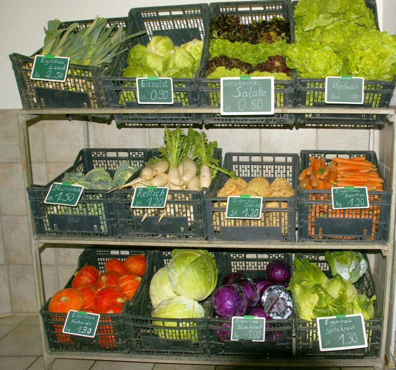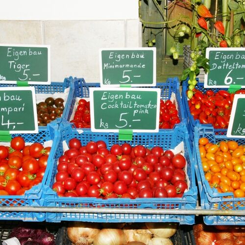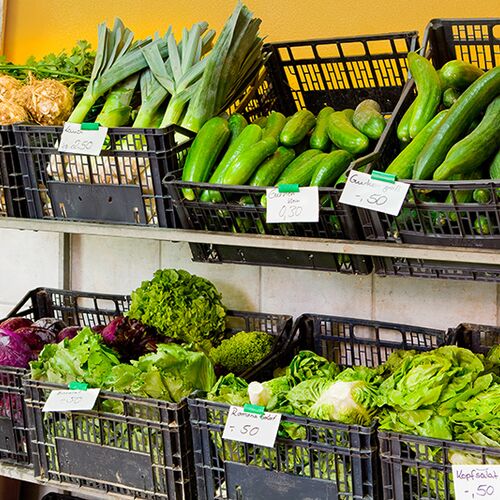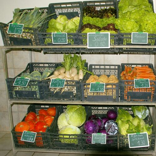Im Hofladen bieten wir Ihnen ganzjährig Gemüse aus Eigenanbau wie zum Beispiel Kartoffeln, Zwiebeln, Karotten, Paprika, Tomaten, Gurken, Kohl uvm. an. Sie kaufen nachhaltiges Gemüse aus der Region ohne lange Transportwege.